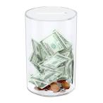 アクリル本舗 開かない 貯金箱 札 100万円貯金 筒型 透明 500円玉貯金箱 おしゃれ 賽銭箱 (円柱×直径12cm, クリア)