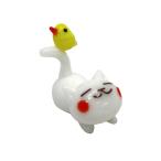 かわいい手作り ガラス細工 ねそべりシロネコヒヨコ