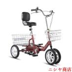 大人用三輪自転車 12/14インチ 調節式バックレスト クルーザーバイク ピークル アルミ合金フレーム 買い物かご付き 安定走行で通勤やお買い物に最適