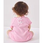 ベビー服 ロンパース 「リンクコーデ」「ベビー」「リブコットン100」バックリボン テレコ半袖ロンパース
