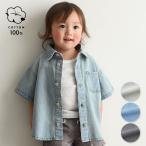 PUPPAPUPO ステンカラー 半袖 シャツ デニム 綿100% 無地 シンプル キッズ ベビー トップス 春 夏 おしゃれ 80 90 100 110 子供服 男の子 女の子 プッパプーポ