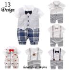 カバーオール ロンパース 半袖 長袖 フォーマル 前開き ベビー用 ボディスーツ スナップボタン 重ね着風 セットアップ風 チェック柄 おしゃれ 可愛