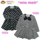 送料無料 女児ベビー ワンピース mia mail リボン付ドット・ボーダー柄ベロアワンピース80cm 90cm 95cm