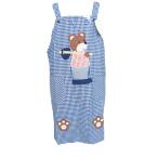 在庫限り 子供エプロン チェックくまアップリケ 青 110・130cm 子ども キッズ 男子 女子 H型 h型 後ろボタン 動物