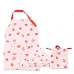 【即発送】ヤクセル 収納袋付き エプロン 子供用 3点セット 身長 120~150cm 三角巾 巾着 調理実習 L いちごとおはな