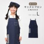 キッズエプロン デニムスタイル 【Lサイズ】 三角巾 セット 男の子 女の子 男女兼用