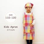 即出荷 キッズエプロンMチアフル ピンク 子供 チェック 三角巾 110 120 ゴム おしゃれ 男の子 女の子