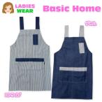 送料無料 レディース エプロン H型 デニム ヒッコリー ボタン留め 婦人 メール便対応