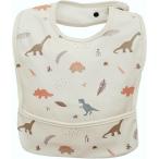 お食事エプロン 保育士監修 柔らか素材 保育園 3Dポケット 洗濯機OK 名前タグ付き(恐竜)
