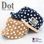 帽子 キッズ 子供 キャップ ワークキャップ ボア付きドットワークキャップ 水玉 あったか 暖かい ワッペン かわいい おしゃれ