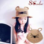 子供用麦わら帽子 耳付き麦藁帽子 ストローハット つば広帽 ツバ広ハット キッズ アニマルフェイス ヒゲデザイン 日よけ 熱中症予防 紫外線対策 UV
