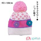 ニット帽子 お花 ストーン付 子供 帽子 女の子 48〜50cm 白 ピンク かわいい おしゃれ 秋 冬 防寒 暖かい 送料無料