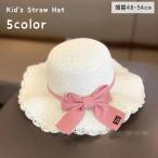 麦わら帽子 ストローハット キッズ 子供 女の子 ガールズ 帽子 ぼうし ファッション小物 リボン つば広 日焼け防止 紫外線対策 日除け かわいい
