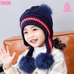ニット帽 ぼうし キッズ ジュニア 子供 子ども 女の子 男の子 耳当て付き ポンポン おしゃれ かわいい あったか 冬 お出かけ