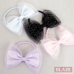 リボン ヘアゴム キッズ チュール シルバードット ひらひら 子供 髪ゴム 入園 入学 発表会 大きめ ヘアアクセサリー BLAZE