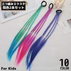 エクステンション ヘアゴム 2個組 子供 キッズ 女の子 つけ毛 三つ編み 編み込み 細め ダンス コスプレ 仮装 ヘアアレンジ 可愛い