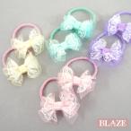 リボン ヘアゴム キッズ 2個セット レース付 ひらひら 子供 髪ゴム 入園 入学 発表会 ヘアアクセサリー BLAZE
