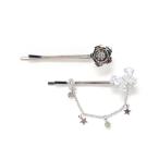 花リボン蝶々モチーフ付きシルバーヘアピン