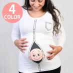 ロングTシャツ レディース トップス 長袖 ラウンドネック マタニティ用 妊婦用 プリント イラスト ユニーク 個性的 フィット 秋 冬 マタニティ服