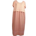 セーター(ニット)&ロングスカート(布地)のワンピース【サイズM〜L寸】サーモンピンク色【レターパック可能】