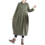 ゆったりワンピース 部屋着 レディース コクーン ハイネック ミモレ丈 冬 秋冬 服(カーキ, XL)