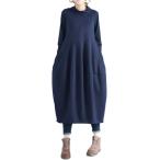 ゆったりワンピース 部屋着 レディース コクーン ハイネック ミモレ丈 冬 秋冬 服(ネイビー, M)