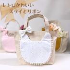 出産祝い スタイ&リボン トートバッグ 名入れ おむつケーキ トートバッグ おむつバッグ 名前入り ビブ スタイ リボン 女の子 コットン 名入れ クリスマス