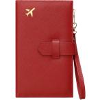 パスポートケース スキミング防止 薄型 二つ折り パスポートカバー 軽量 ストラップ付き (レッド)