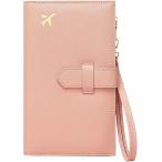 パスポートケース スキミング防止 薄型 二つ折り パスポートカバー 軽量 ストラップ付き (ピンク)