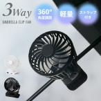 ハンディファン 傘 クリップ 3WAY ストラップ 卓上 360°角度調節 通勤 通学 熱中症対策 コードレス 軽い 扇風機 ホワイト ブラック HED-7745 HED-7752