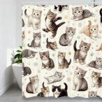 シャワーカーテン バスカーテン カーテンリング付き 180 180cm ネコ 猫 ユニットバス 浴室 お風呂 目隠し 間仕切り 洗面所 かわいい