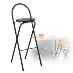 折りたたみ椅子 座面高50cm 背もたれ付 合皮クッション座面 ブラックフレーム ( キッチンチェア カウンターチェア 背もたれ 円形 丸 パイプ椅子 )