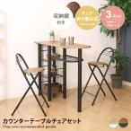 ダイニングセット バーテーブル キッチンカウンター 折りたたみ椅子 チェア カフェテーブル ハイ 折畳 椅子付き 2脚 セット 店舗 お店 ショップ 棚付き