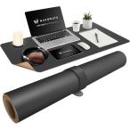 空間を調和するデスクマット 空間デザイナー監修 レザー 裏面コルク デスクパッド 90cm x(グレー, 90cm x 43cm)
