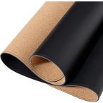 ナチュラルコルク 両面デスクマット 大型 マウスパッド 防水 PUレザー デスクプロテクター オフィス (ブラック, 60x30cm)