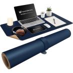 空間を調和するデスクマット 空間デザイナー監修 レザー 裏面コルク デスクパッド 90cm(ダークブルー, 90cm x 43cm)