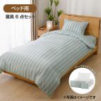 [シングル]ヤマダオリジナル すぐに使える寝具6点セット ベッド用 掛布団・ベッドパッド・枕・カバー3種 ストライプ グリーン