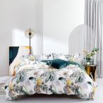 布団カバーセット 4点セット 通気性 60番手高密度織り オリジナル柄デザイン ベッドカバーセット(Plantain, シングル・S)
