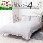 寝具カバー4点セット ダブル フリル おしゃれ ピーチスキン オールシーズン 布団カバーセット 新生活