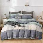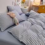 布団カバー セット シングル/ダブル/クイーン/キング ベッドカバー セット チェック柄 シンプル 4点セット 150×210 170×210 190×210 210×210cm 四季通用