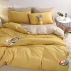 布団カバー ベッドカバー 4点セット 寝具 格 黄色 チェック柄 ボックスシーツ 洋式 おしゃれ 春夏 綿 コットン シングル セミダブル ダブル