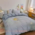 布団カバー ベッドカバー 4点セット 寝具 格 黄色 チェック柄 ボックスシーツ 洋式 おしゃれ 春夏 綿 コットン シングル セミダブル ダブル