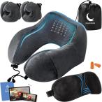 理学療法士監修ネックピロー 飛行機 低反発 トラベルピロー 首枕 ネックレスト ネックケア 低反発ウレタンフォーム アイマスク(グレー)