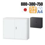 国産 完成品 スチール引戸書庫 2段 鍵付き 上置き ホワイト ブラック 幅880×奥行380×高さ750mm スチール書庫 スチールキャビネット オフィス 収納 事務所