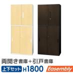 書庫 セット 2段 3段 2台 両開き 引戸 スチール オフィス収納 キャビネット システム収納 木目 本棚 書棚 収納棚 A4 業務用 鍵付 連結 上下 EA-8040-2R3H2-C