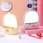スタンドミラー 卓上ミラー 化粧鏡 メイクミラー 収納ポケット付き 角度調整可能 アヒル 小物入れ付き お化粧直し ヘアーセット 折りたたみ コンパク