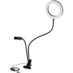 エレコム DE-L01BK LEDリングライト 16cm クリップスタンド 3色モード 10段階調光 USB給電 ブラック