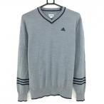 【超美品】アディダス セーター グレー×ネイビー Vネック ロゴ刺しゅう ニット メンズ L/G ゴルフウェア adidas
