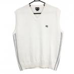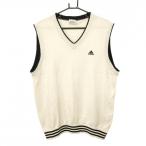 アディダス ニットベスト 白×黒 ロゴ刺しゅう Vネック ウール混 メンズ O/XG ゴルフウェア adidas