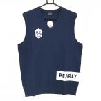 【新品】パーリーゲイツ ニットベスト ネイビー 織生地 ロゴ白 Vネック メンズ 6(XL) ゴルフウェア PEARLY GATES